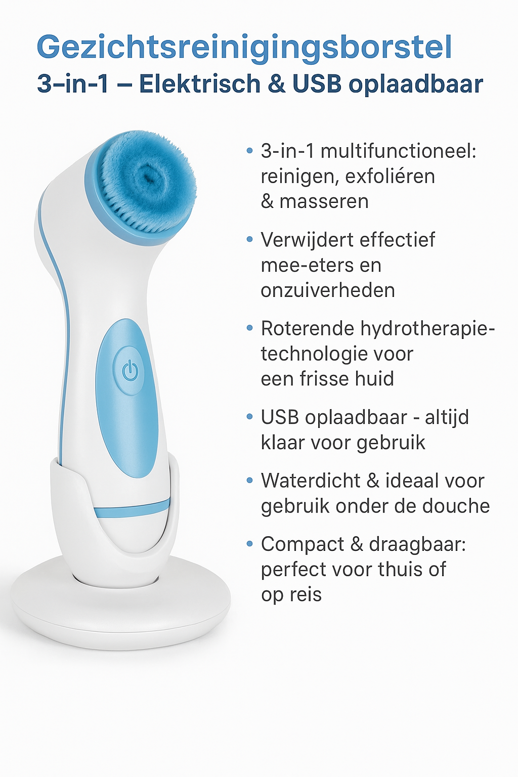 Gezichtsreinigingsborstel 3-in-1 – Elektrisch & USB oplaadbaar